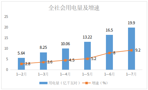 截至7月底,博州全社会用电量(电网同期监测数据,不含兵团,下同)19.9亿千瓦时,同比增长9.2%,自2月以来,增速持续攀升。