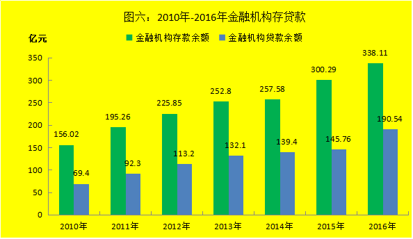 年末全州金融机构各项存款余额338.11亿元,增长12.6%。境内存款338.1亿元,增长12.6%。其中住户存款151.67亿元,增长12.8%;非金融企业存款74.12亿元,增长29.7%;广义政府存款111.88亿元,增长3.5%;非银行业金融机构存款0.42亿元,下降32.3%;境外存款43.49万元,下降64%。年末全州金融机构各项贷款余额190.54亿元,增长30.7%。其中:短期贷款90.14亿元,增长9.5%;中长期贷款91.94亿元,增长52.6%。境内贷款190.54亿元,增长30.7%,其中:住户贷款75.67亿元,增长18.8%;非金融企业及机关团体贷款114.87亿元,增长39.9%。