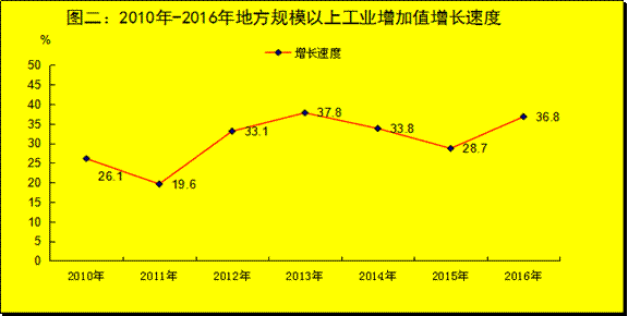 规模以上工业中,农副食品加工业增加值增长112.9%,纺织业增加值增长100.1%,非金属矿采选业增加值增长83.4%,化学原料和化学制品制造业增加值增长77.8%,酒、饮料和精制茶制造业增长56.1%。16种规模以上工业主要产品中有13种产品产量实现增长。