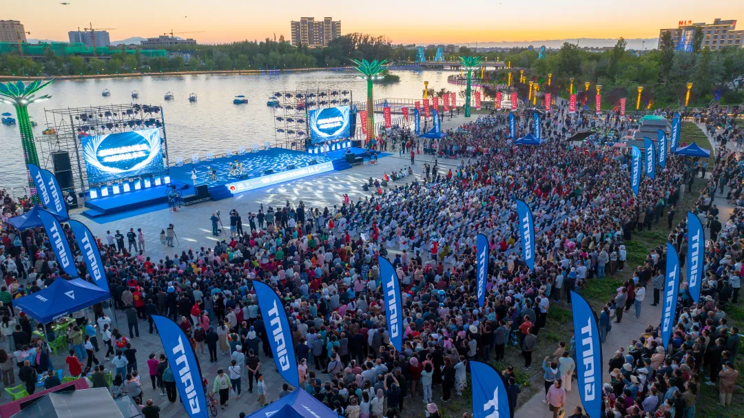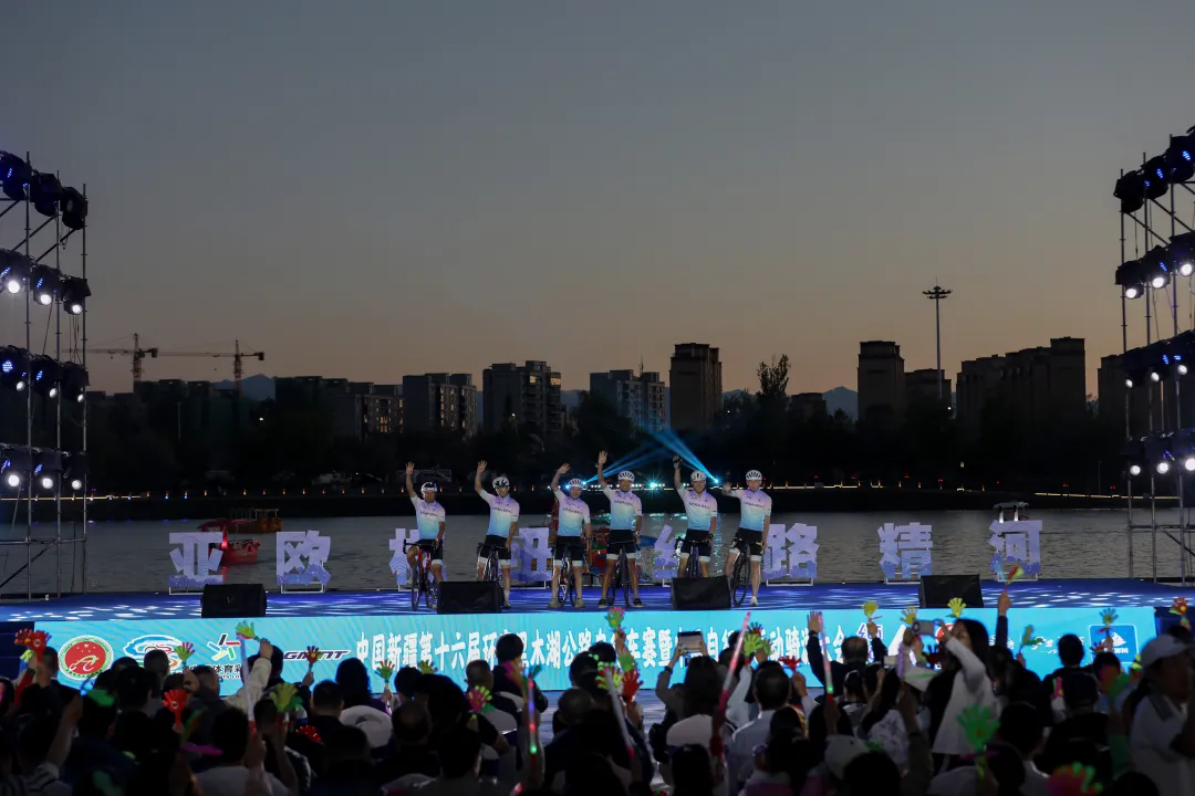 激情五月,相聚杞乡,如约而至,共赴骑行盛会。5月27日22时,由自治区体育局、自治区文旅厅、博州人民政府、第五师双河市人民政府共同主办的中国新疆第十六届环赛里木湖公路自行车赛暨中国自行车运动骑游大会开幕式文艺晚会在精河生态园亲水河岸广场举行,拉开了本届赛事的序幕。