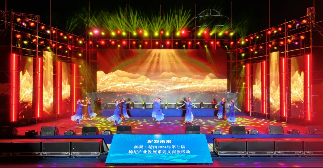 22时28分,自治州党委常委、组织部部长燕伟宣布:“杞发未来”新疆·精河2024年第七届枸杞产业发展系列文商旅活动开幕。开幕式上,精河县发布了锁鲜干果枸杞、枸杞酵素、枸杞籽油、杞枣活力饮、肉苁蓉西洋参枸杞片等7款枸杞系列新品。随后,文艺晚会在舞蹈《舞动的青春》拉开序幕,歌曲《精河岁月》《精河之恋》,舞蹈《丝路梦蝶》《燕子》《美丽新疆》等精彩节目轮番上演。