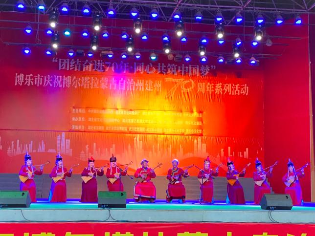 此次文艺演出,除了传统的歌舞表演,湖北省荆楚红色文艺轻骑兵团队还特别展示了非物质文化遗产和民间艺人的杰出作品,展现了中华民族深厚的文化底蕴和对博州70年发展历程的深情回顾。