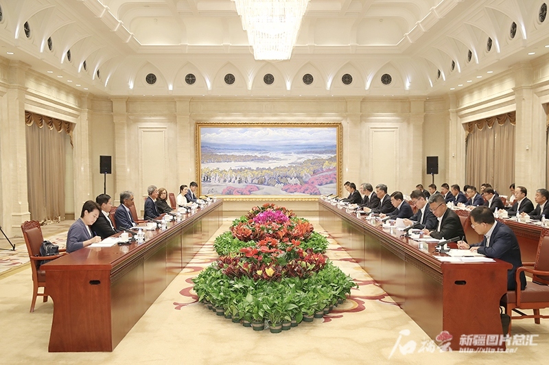 8月19日,自治区党委书记马兴瑞在乌鲁木齐会见来中国新疆考察的新加坡淡马锡公司董事长林文兴、首席执行长兼执行董事狄澜一行。 石榴云/新疆日报记者 崔志坚摄