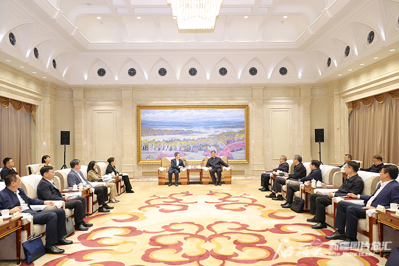 9月9日,自治区党委书记、兵团党委第一书记、第一政委马兴瑞,自治区党委副书记、自治区主席艾尔肯·吐尼亚孜在乌鲁木齐会见辽宁省委常委、副省长张立林和代表团成员。石榴云/新疆日报记者 崔志坚摄