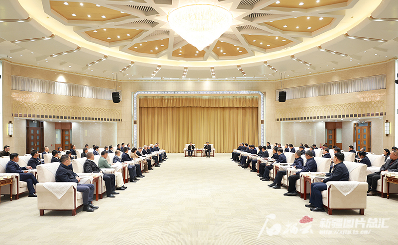 11月2日,自治区党委书记、兵团党委第一书记、第一政委马兴瑞,自治区党委副书记、自治区主席艾尔肯·吐尼亚孜在乌鲁木齐会见来新疆投资考察的24家上市公司、6家头部企业、8家“专精特新”企业负责人及有关专家。石榴云/新疆日报记者 崔志坚摄