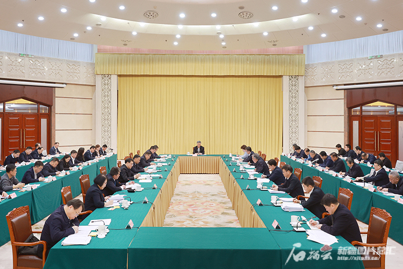 12月16日,自治区党委书记马兴瑞听取由他领衔督办的“关于推进民营企业健康稳定快速发展的建议”办理情况汇报。石榴云/新疆日报记者 崔志坚摄