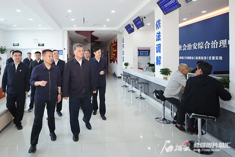 4月22日,自治区党委书记马兴瑞在精河县社会治安综合治理中心,察看中心建设运行情况。石榴云/新疆日报记者 崔志坚摄