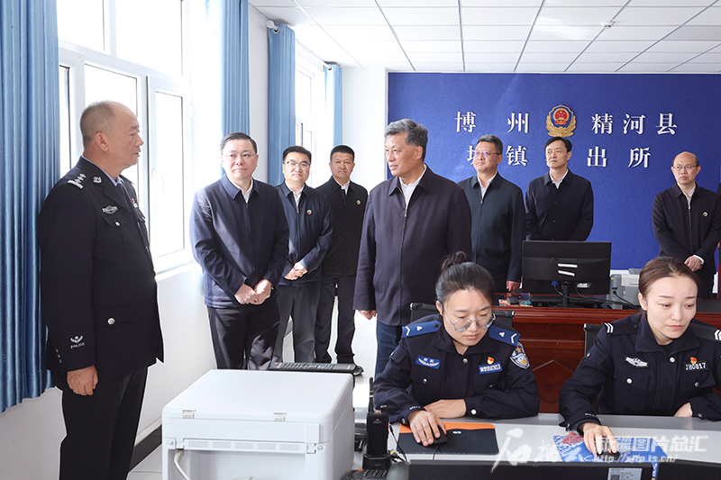 4月22日,自治区党委书记马兴瑞在精河县城镇派出所,详细询问警力下沉工作成效。石榴云/新疆日报记者 崔志坚摄