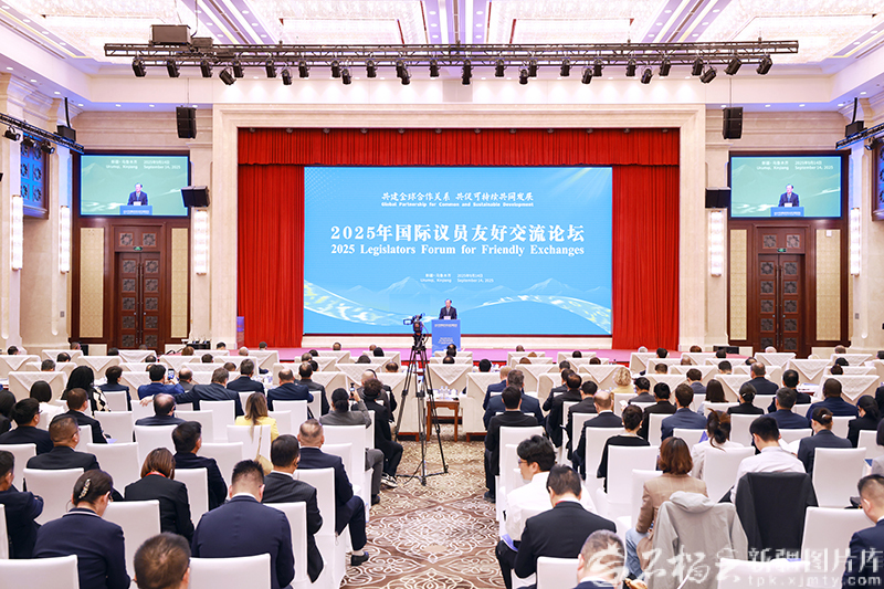 9月14日,2025年国际议员友好交流论坛在乌鲁木齐市举行。全国人大常委会副委员长雪克来提·扎克尔出席论坛并作主旨发言。石榴云/新疆日报记者 崔志坚摄