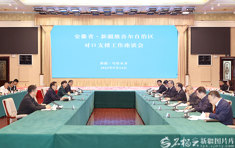 9月14日,安徽省·新疆维吾尔自治区对口支援工作座谈会在乌鲁木齐召开。石榴云/新疆日报记者 崔志坚摄