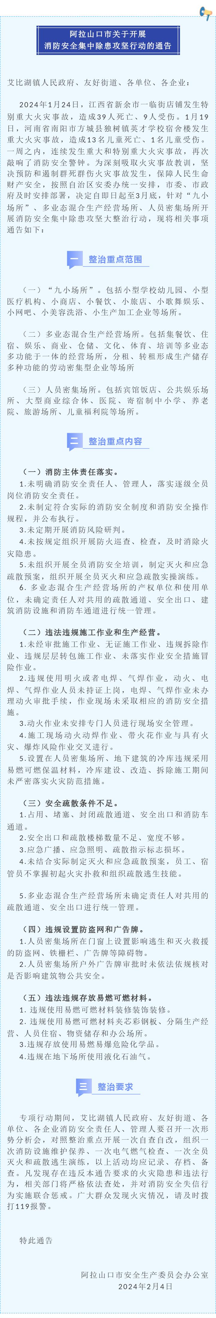 阿拉山口市关于开展消防安全集中除患攻坚行动的通告