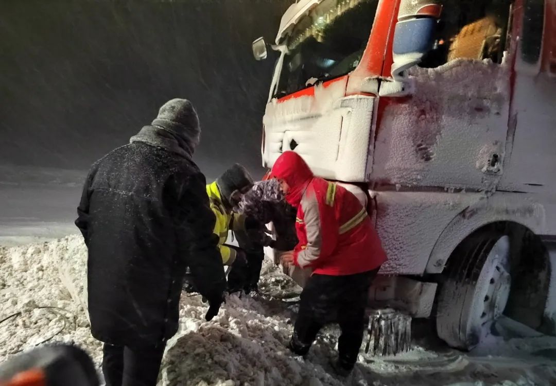 受寒潮天气影响,2月16日凌晨2点30分,新疆交投集团博乐分公司管辖G30线连霍高速公路K4050-K4159赛里木湖路段出现风吹雪极端恶劣天气,风力达10级以上,两侧山区的积雪在大风的肆虐下不断地冲上高速公路,能见度不足10米,导致50余辆车辆被困高速公路,车辆无法正常通行。