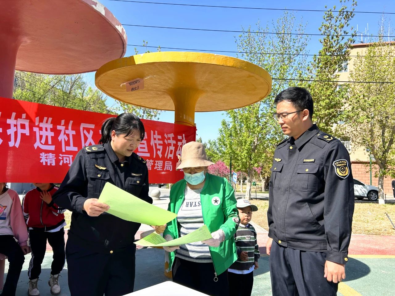 在精河镇和平小区宣传点,工作人员通过悬挂横幅、发放宣传单等形式,向沿街商户及过往群众宣传“精河枸杞”地理标志,动员和鼓励广大群众积极举报知识产权领域违法行为,营造了全社会参与知识产权学习的良好氛围。