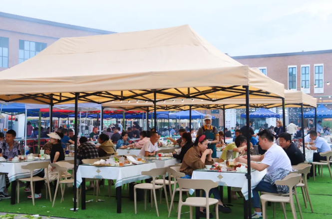 “我们购置了帐篷、配套桌椅板凳,做了草坪、亮化、美化,设置了各个网红打卡点,方便来夜市的人拍照打卡,美食也是挑选一些有特色的,有海鲜、牛骨头、架子肉等。”天台露营美食广场负责人刘朝坤说。