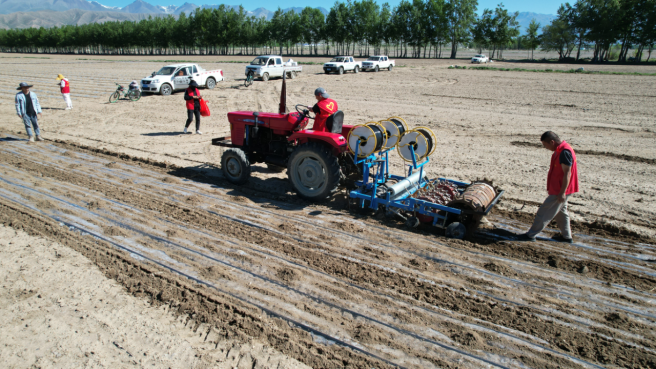 温泉县农业技术推广站站长满都利说:“今年我们利用孟克图布呼村沙壤土地的优势,探索新思路,从奇台试验站经过研究学习引进了板蓝根种子,到今年9月底就可以丰收,预计亩产可以达到200公斤左右。”