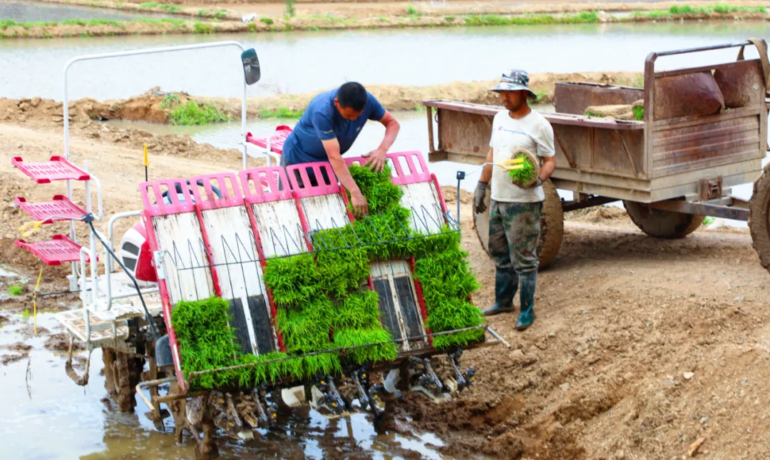 眼下,正值早稻插秧关键期,精河县种植户抢抓农时,开展机械化插秧,田间地头呈现一派繁忙景象。