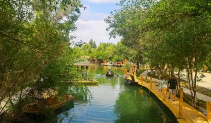 原先是星火干渠水系沿线,经过整治改造,由北至南分为自然康养、都市活力、印象博乐三个主题,打造秀丽宜人的城市生态滨水空间。