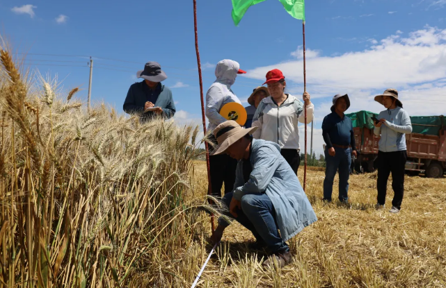 7月5日,自治区农业农村厅邀请国家小麦专家张睿、赵奇、雷斌、张跃强、葛军等5名同志专程赴博乐市,对小营盘镇哈日莫墩村360亩小麦高产攻关田开展了现场实收测产,专家组分别以国家测产标准划定5亩、100亩两个测产单元。