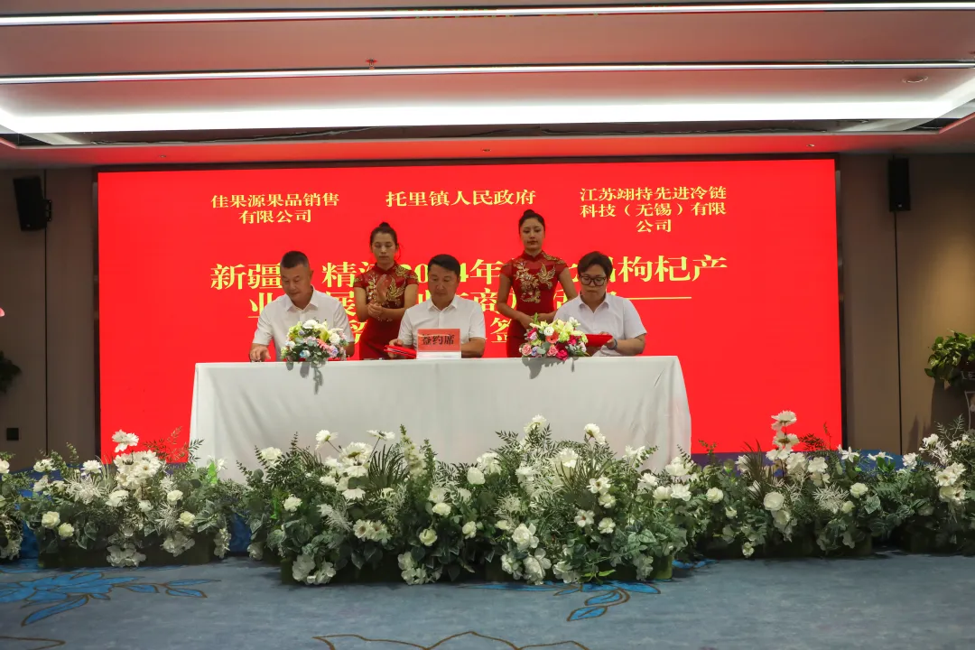 签约仪式上,湖北沁禾沅电子商务有限公司、新疆九鼎农业发展投资集团有限责任公司、新疆众鲜网络科技有限公司分别与新疆杞明星枸杞产业发展有限公司签订了销售协议。佳果源果品销售有限公司、江苏翊持先进冷链科技(无锡)有限公司分别和托里镇签订了销售协议。中粮屯河番茄有限公司、四川省一片叶药业有限公司分别与精河天山果业农业科技有限公司、新疆精杞神枸杞有限责任公司签订了销售协议。当天,累计签约项目7个,签约金额6269万元。