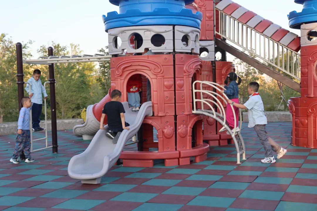 9月11日,位于阿拉山口市艾比湖镇友谊社区友谊苑小区,新建的儿童乐园不时传来孩子们的嬉闹声。这里充满童趣的滑梯、城堡、爬梯、拱桥等儿童游乐设施一应俱全,成为小区内孩子们最爱去的“打卡地”。