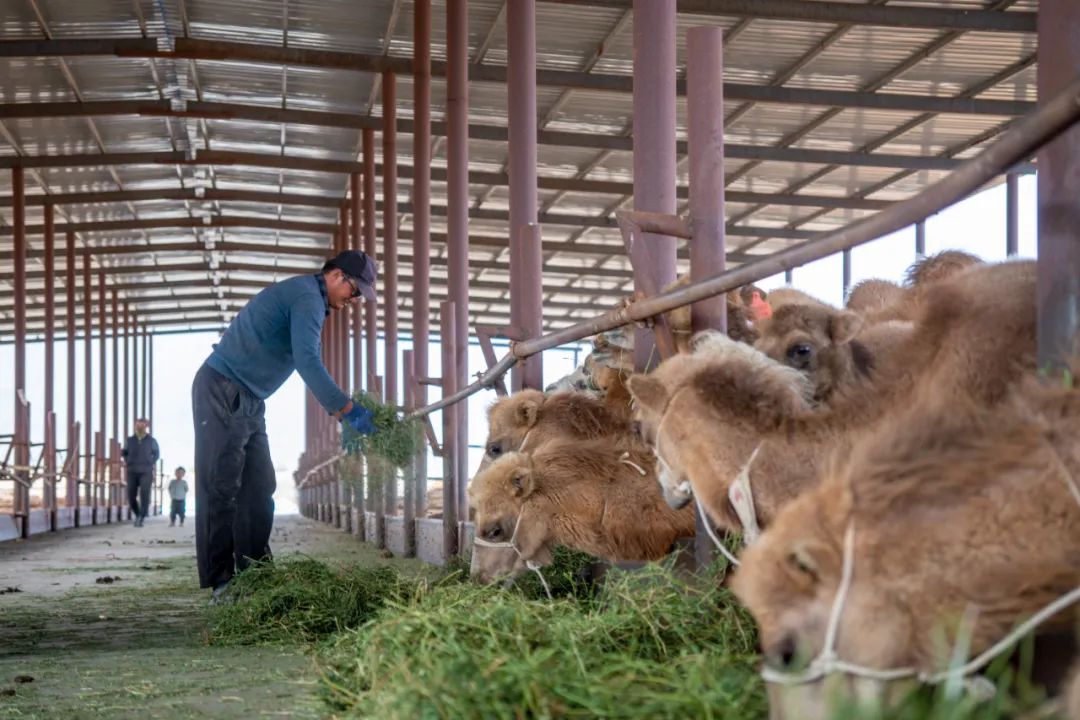 “我共饲养了450峰骆驼,其中母骆驼超过400峰,一峰骆驼日均产奶量在两公斤半到三公斤,一天能挤驼奶350公斤。”依斯哈提介绍道,“所有骆驼均为新疆本地双峰驼,每两年产一胎,一般4岁后才能开始产奶。”