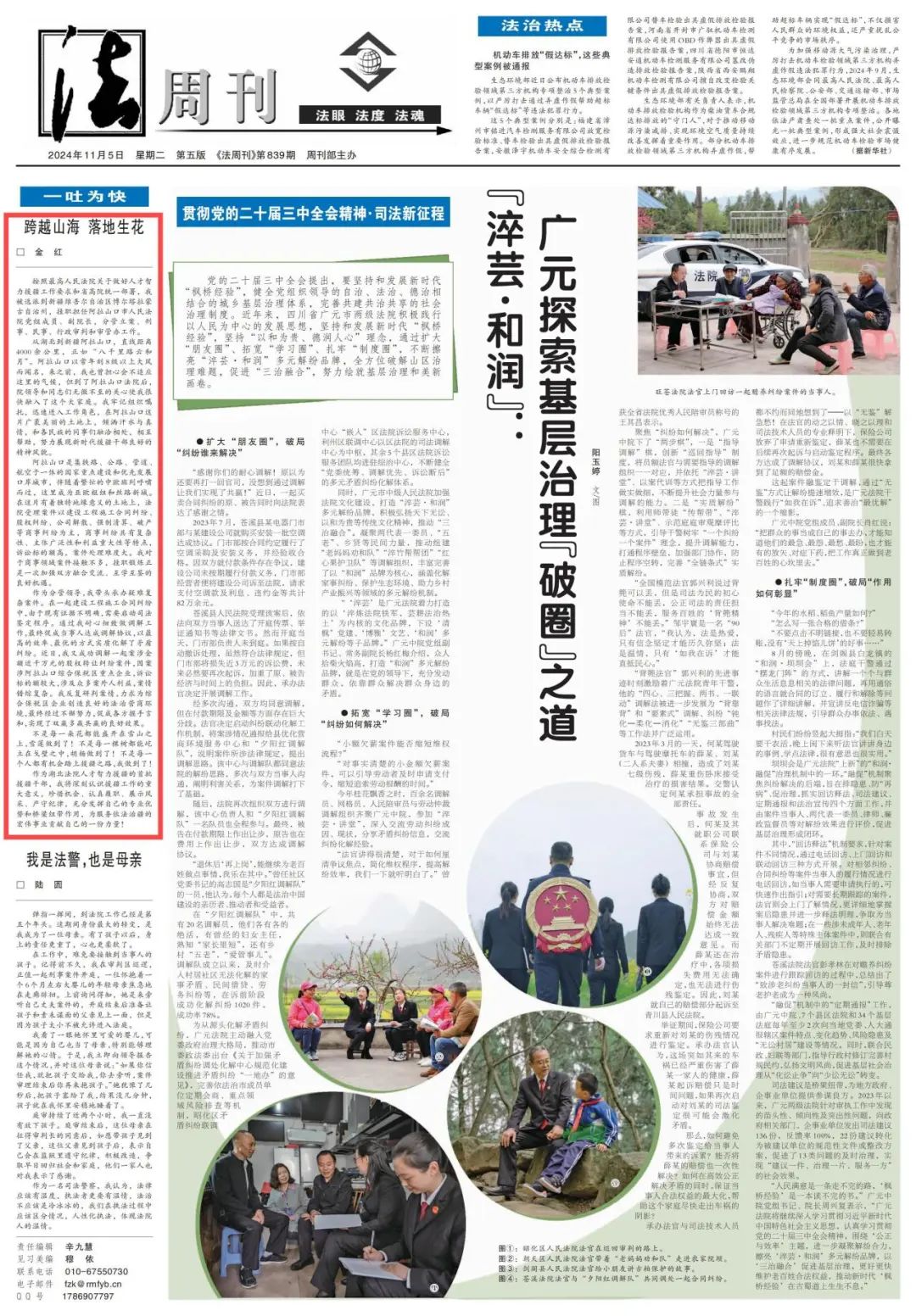 新疆博州阿拉山口市人民法院党组成员、副院长金红(挂职),挂职期间分管立案、刑事、民事、行政审判和审管办工作,对援疆法院工作做出了积极贡献,撰写的《跨越山海 落地生花》被人民法院报刊登。
