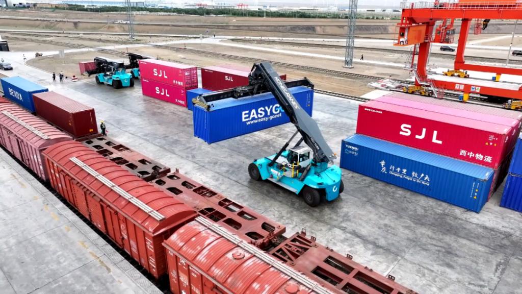 中欧班列是共建“一带一路”的旗舰项目,便利快捷、安全稳定、绿色经济的优势使其成为广受欢迎的国际公共产品。多年来,中欧班列开行数量始终保持着强劲增长态势。今年,兰新铁路精河至阿拉山口段增建二线全线开通,阿拉山口综合查验场建成投用,阿拉山口铁路口岸宽、准轨到发线达到32条,进一步推动班列发运提质增效。