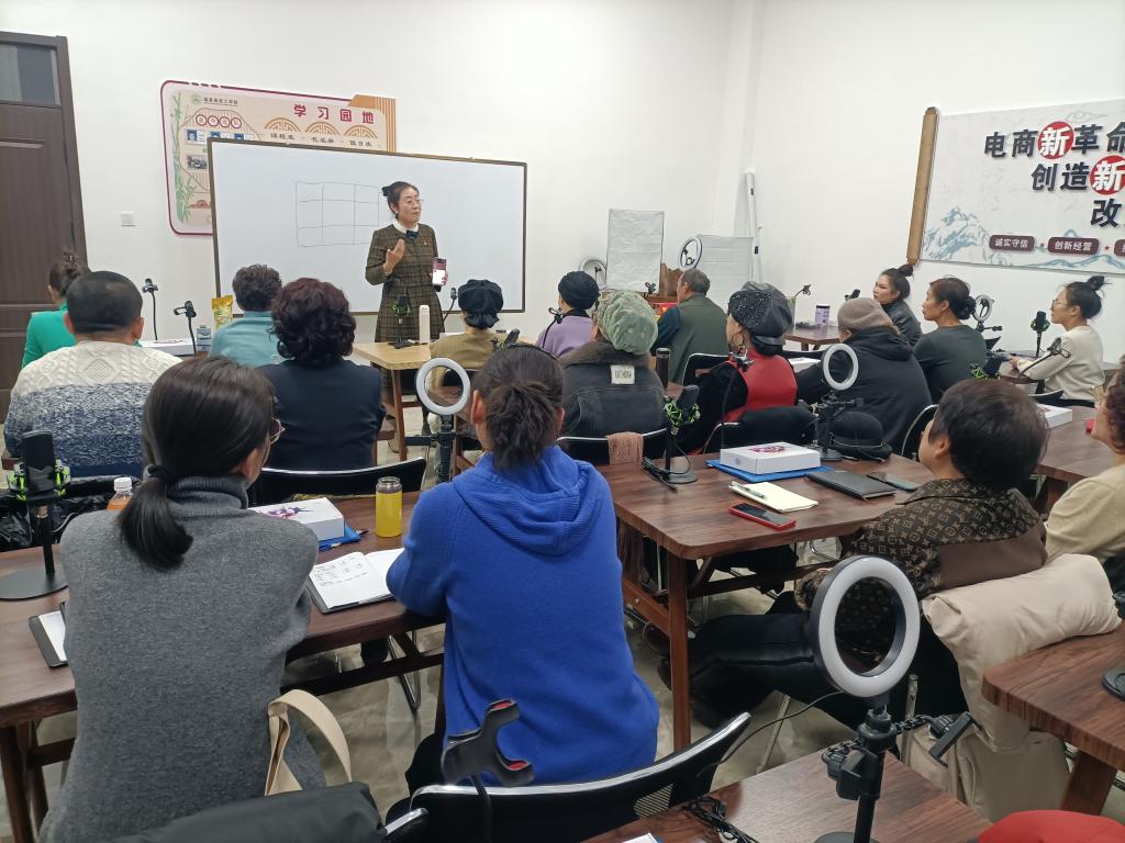 进入12月以来,技能培训班一场接着一场举办。走进电子商务师培训班,授课老师正在为学员讲解直播和带货技巧。培训采取“理论+实操+案例”的形式,从短视频拍摄技巧、创意剪辑、内容策划、线上直播、话术技巧等方面,全方位、系统化、多角度为学员们介绍电商发展趋势,并通过直播实战演练,让学员们在实践中掌握电商创作与运营的核心技巧。海云餐厅负责人马秀梅谈到,这次20天培训学习,收获特别大,不但学到了拍摄、剪辑、直播的一些相关知识,还提高了我们对电商直播的认识和应用能力。以后,我们也可以用此来进行创业,也可以通过抖音、快手这些平台能够让我们走上一种创业致富的方式。