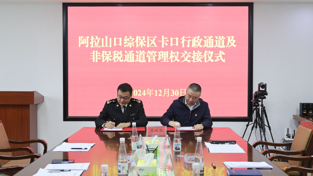 2024年12月30日,阿拉山口综合保税区卡口行政通道及非保税通道管理权交接仪式在阿拉山口综保区企业服务中心举行。此次交接仪式标志着阿拉山口综保区在推进口岸功能提升、优化口岸管理、促进区域经济发展方面迈出了重要一步。