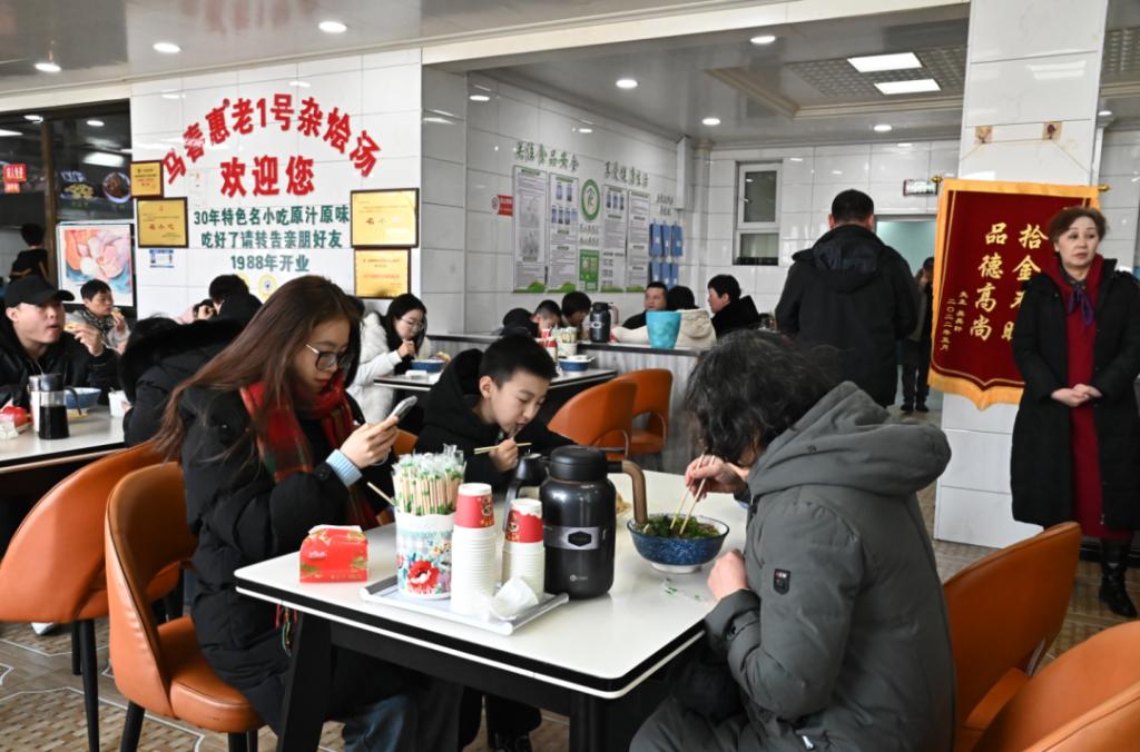 到达五台驿后,五台社区的工作人员热情周到地为前来旅游的群众服务。他们引导游客有序步入品尝区,让游客品尝到汤汁鲜香四溢的杂烩汤,还为游客端上了煮得软糯香甜的元宵。来自乌鲁木齐的游客张女士说:“早就听闻精河的杂烩汤很出名,今日一尝,果然名不虚传。在元宵佳节来临之际,能置身这般浓郁的节日氛围中,实在是一场难忘之旅。”