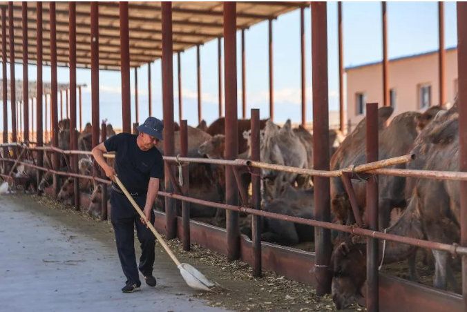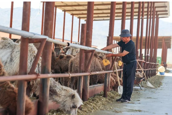 随着标准化养殖基地不断发展完善,大河沿子镇众多牧民正告别传统散养模式,迈向规模化、产业化经营之路。从“单打独斗”到“抱团发展”,精河县骆驼产业正成为当地乡村振兴的“甜蜜事业”。