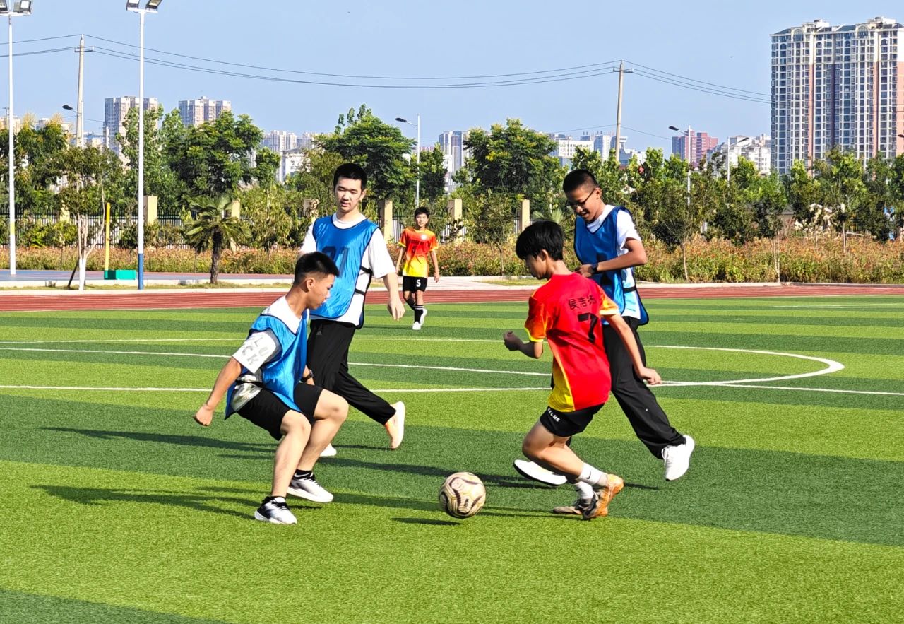上午8时,大冶市第四实验学校绿茵场上跃动着青春的身影。阿拉山口市中学与大冶市第四实验学校的足球友谊赛拉开帷幕。“传球!”第四实验学校10号队员一记长传,足球落对方7号脚下。带球突破时,双方队员不慎相撞摔倒,却又笑着互相搀扶起身——这样的温暖瞬间,让竞技化作友谊的桥梁。终场哨响,比分定格在2:2。