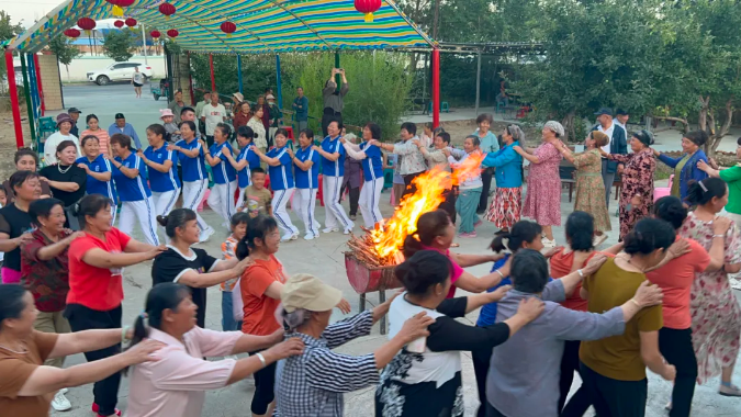 暮色四合时,博乐市阿热勒托海牧场的“牧场小院”早已亮起点点灯火。院角的篝火堆偶尔窜起火星,百姓食堂的后厨飘出阵阵肉香,大铁锅里的手抓肉咕嘟冒泡,厨师正挥着长勺翻动烤盘上的烤全羊,油星溅在炭火上噼啪作响。