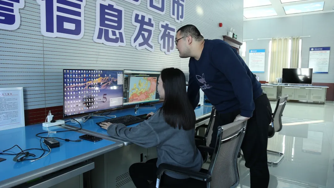 阿拉山口市气象局工作人员正在开展气象预测。牛宁 摄