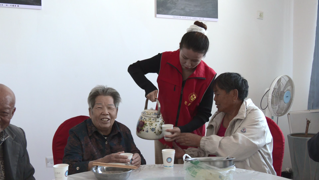 “现在日子过得舒心。村上对我们老人特别照顾,孩子们都在外打工,没法常陪我们。村上管饭,还免费,饺子、拉条子、汤饭啥都有,太贴心了。”蔡兰英说。