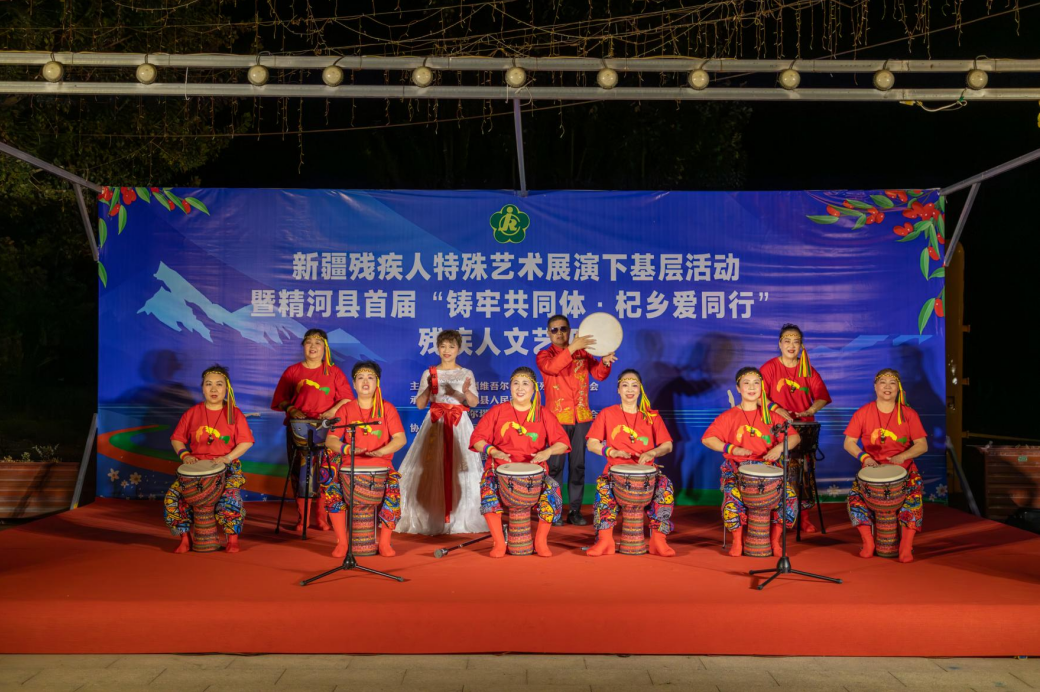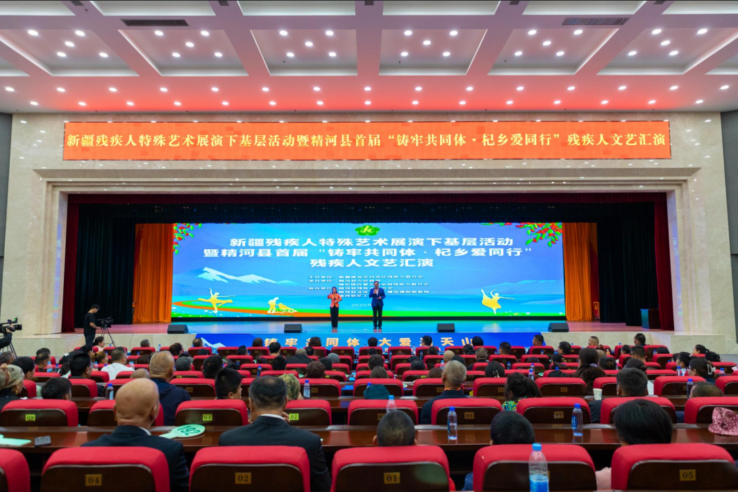 当天,首场活动新疆残疾人特殊艺术展演下基层活动暨精河县首届“铸牢共同体・杞乡爱同行”残疾人文艺汇演和助残公益拍卖在精河县商务中心举办。活动在热情洋溢的舞蹈《新疆是个好地方》中拉开序幕。随后的10个精彩节目轮番上演,为观众呈现了一场特殊的艺术盛宴。演出间隙还穿插了四轮“博爱无边”助残公益拍卖环节,将现场氛围推向高潮。