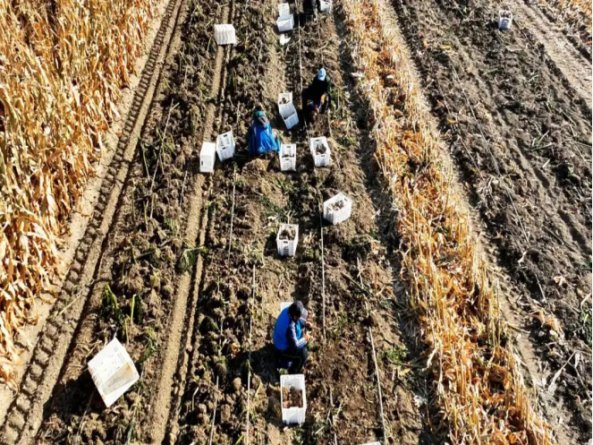 查干屯格乡地处温带大陆性气候区,昼夜温差大,土壤肥沃且排水条件优良,这样的自然环境与魔芋喜温喜湿、怕涝的生长特性高度契合。今年年初,查干屯格乡结合当地气候和土壤条件,积极引进优质魔芋品种,以 “合作社 + 基地 + 农户” 的产业化发展模式,引导农户规模化发展魔芋种植产业。合作社不仅为农户提供种苗、技术指导等全方位支持,还提前搭建了稳定的销售渠道,让农户 “种得放心、卖得安心”,有效消除了后顾之忧。