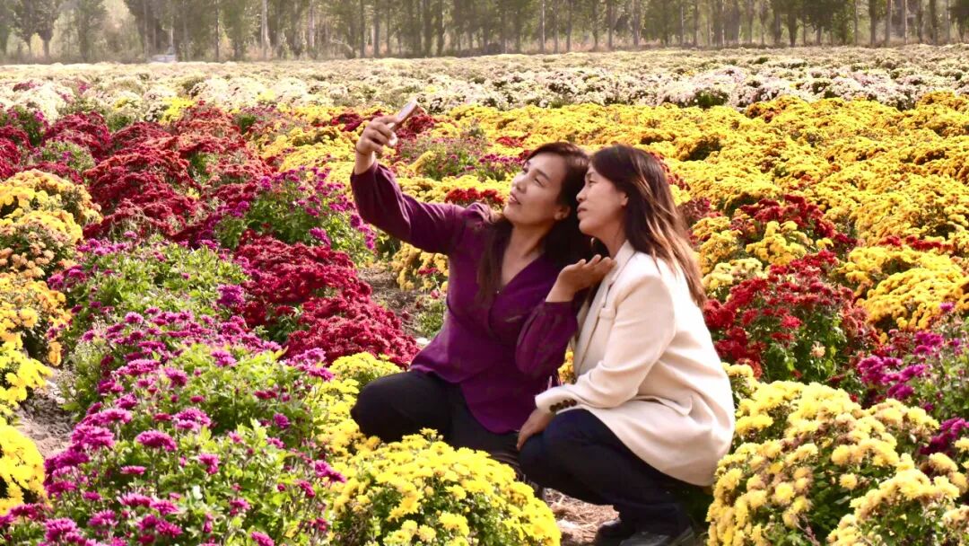 据了解,五棵树村菊花基地是按照田园综合体和现代农业产业园打造的集观赏价值与经济价值于一体的农旅融合项目。目前,该基地种植面积达150亩,主要品种为北京夏菊,这类菊花不仅能长期保持艳丽姿态,而且观赏期长、花色丰富。由于采取免费开放的模式,每逢周末、节假日,前来游客络绎不绝,单日最高接待量达1000人次。这片菊海不仅扮靓了乡村,更激活了村集体的农旅产业活力,为推动乡村振兴注入了“新动能”。