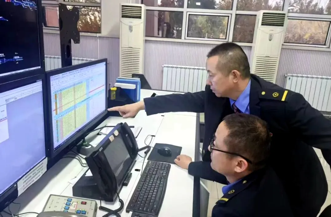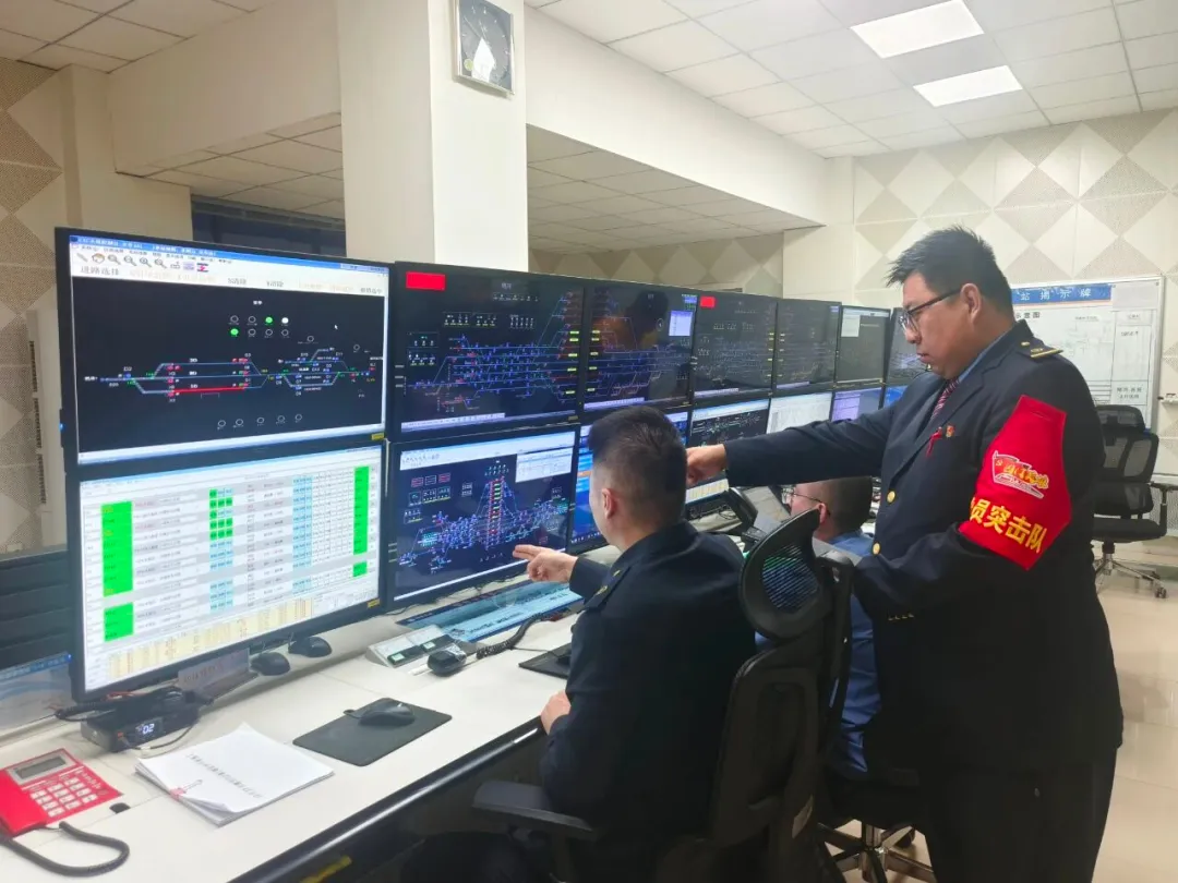 运转车间党总支以“保畅通、提效率”为核心任务,成立“应急补位小组”,实行“1+1”结对补岗机制,有效应对人员缺口。车间党总支书记魏大海、班组长王伯喜等党员带头坚守,每日提前1小时到岗梳理计划、延后1小时复盘调车与接发车数据,确保车站运转中枢高效运转。