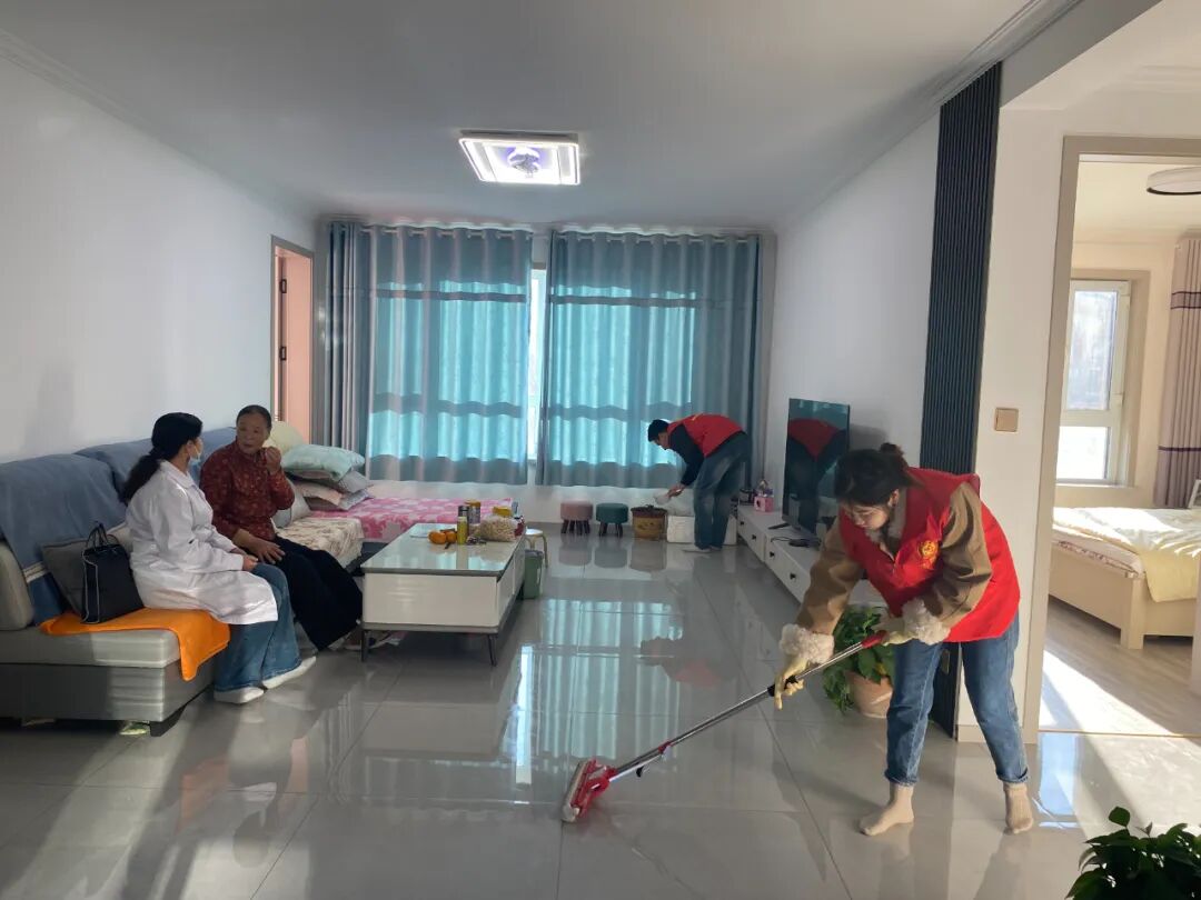 健康服务之外,生活照料同步推进。志愿者们分工明确、默契协作,有的仔细清扫地面灰尘,有的擦拭门窗桌椅提亮环境,有的为阳台绿植浇水焕活生机,有的将堆积垃圾打包清运……忙完家务后,志愿者们围坐在老人身边拉家常、聊近况,认真倾听老人心声,从生活琐事到社区新貌,贴心陪伴让独居老人脸上绽放出灿烂笑容,有效缓解了孤独感。