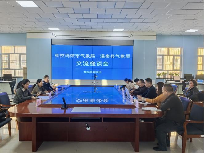 1月8日,克拉玛依市气象局一行前往温泉县气象局开展交流调研活动,旨在通过跨区域协作汇聚发展合力,推动两地气象事业实现高质量发展。