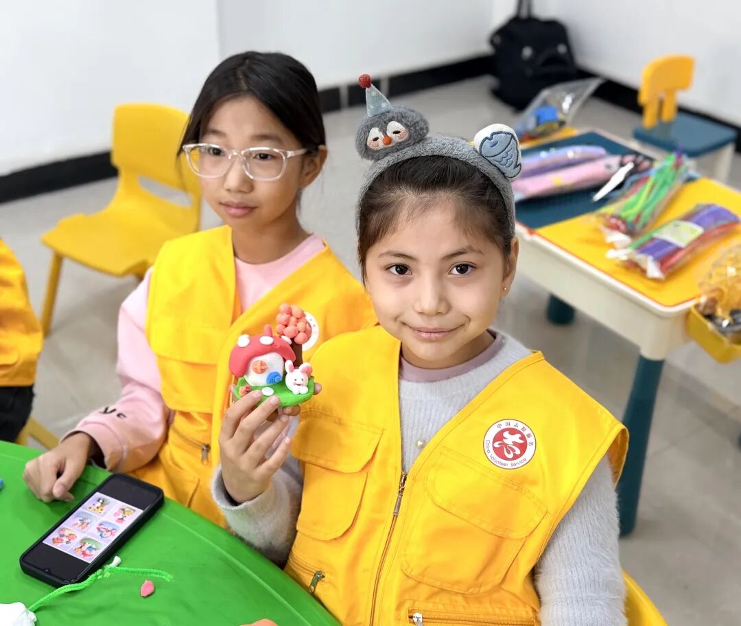 活动现场,多样的创作材料瞬间吸引了孩子们的注意力。在志愿者的悉心指导下,大家积极投入创作,有的与同伴轻声交流创意想法,有的主动请教技巧难点,有条不紊地勾勒、塑形、拼接,亲手打造出小兔子、蘑菇屋等各具特色的手工作品,现场充满欢声笑语。志愿者们穿梭其间,及时答疑解惑、提供协助,全力助力每个孩子完成专属作品。