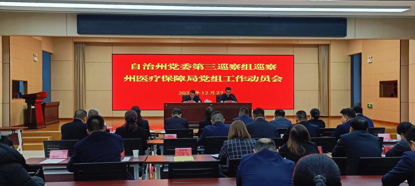 根据自治州党委关于巡察工作的统一部署,12月27日,自治州党委第三巡察组巡察州医疗保障局党组工作动员会召开。会前,自治州党委第三巡察组组长阮子城主持召开与州医疗保障局班子成员和联络组的见面沟通会,传达了州党委书记专题会议精神,通报了本次巡察的有关工作任务和相关要求。动员会上,阮子城作了动员讲话,对做好巡察工作提出要求。州医疗保障局党组书记、局长胡晨晖主持会议并作表态发言。