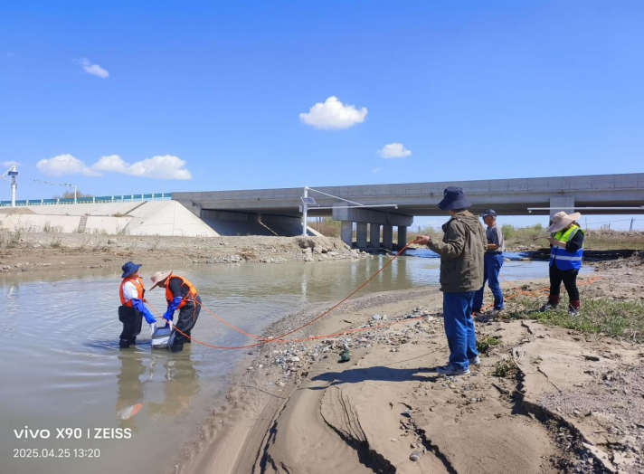 为认真做好2025年博州地表水生态监测工作,客观反映博州水生态环境质量,博尔塔拉生态环境监测站组织技术人员参加培训并通过上岗考核后,对全州3个国控断面(博尔塔拉河、精河河、赛里木湖)开展水生态监测工作。
