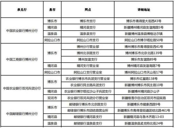 中国工商银行博州分行、中国农业银行博州分行、中国农业银行双河兵团分行、中国邮政储蓄银行博州分行(以下统称承办银行)共同承担博州辖区中国京剧艺术普通纪念币的预约兑换工作,承办银行将在其官方网站公布中国京剧艺术普通纪念币预约兑换网点和每个网点的可预约兑换数量等信息。