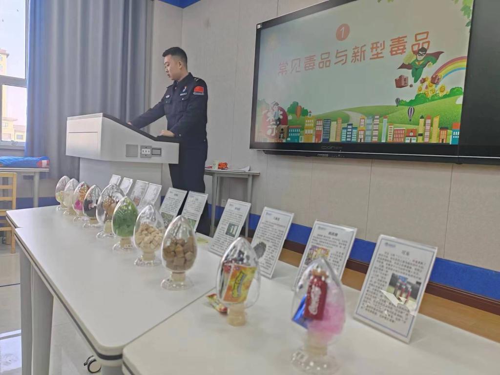 博乐市第七小学民警近距离向学生介绍新型毒品
