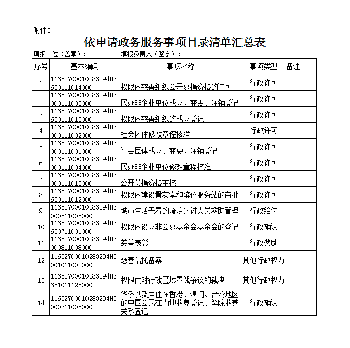 行政权力事项清单