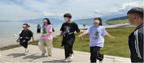 在风景如画的湖畔草地,工作人员与孩子们开展了丰富多彩的趣味互动游戏,如蒙眼踏步走、企鹅漫步等。游戏环节充满欢声笑语,有效拉近了孩子们之间的距离,培养了他们的团队协作精神、沟通能力和规则意识,在轻松愉快的氛围中释放活力。