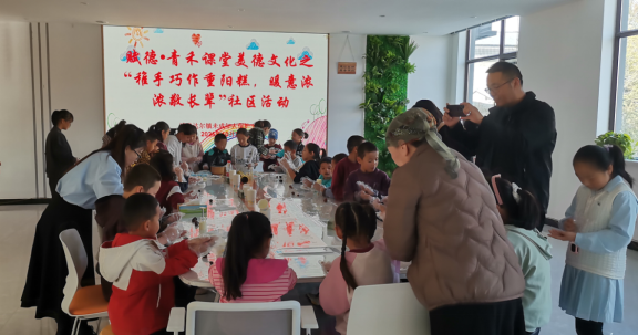 霜染秋林,桂香浮动,恰逢九九重阳敬老之日,为传承中华民族尊老敬老的传统美德,在博州民政局、温泉县民政局的指导支持下,博州宏睿社工服务中心依托博格达尔镇博路社区未保站“赋德•青禾课堂”,成功举办“稚手巧作重阳糕,暖意浓浓敬长辈”社区实践活动。