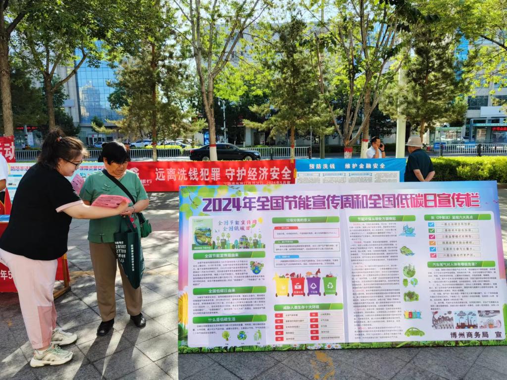 通过开展节能知识宣传展板、设置咨询服务台、发放节能知识宣传手册等形式,结合工作实际向居民群众开展节水、节电、绿色消费、绿色出行、禁塑环保等绿色低碳实践,推动形成绿色低碳、简约适度的生活方式。